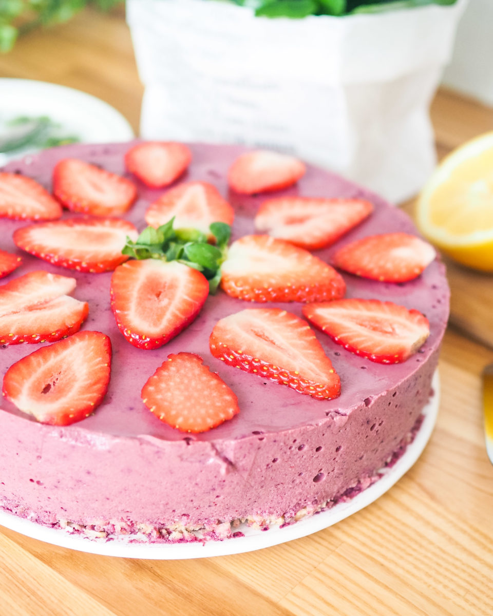 - Kaada massa pohjan päälle irtopohjavuokaan ja jätä kakku hyytymään yön yli jääkaappiin.